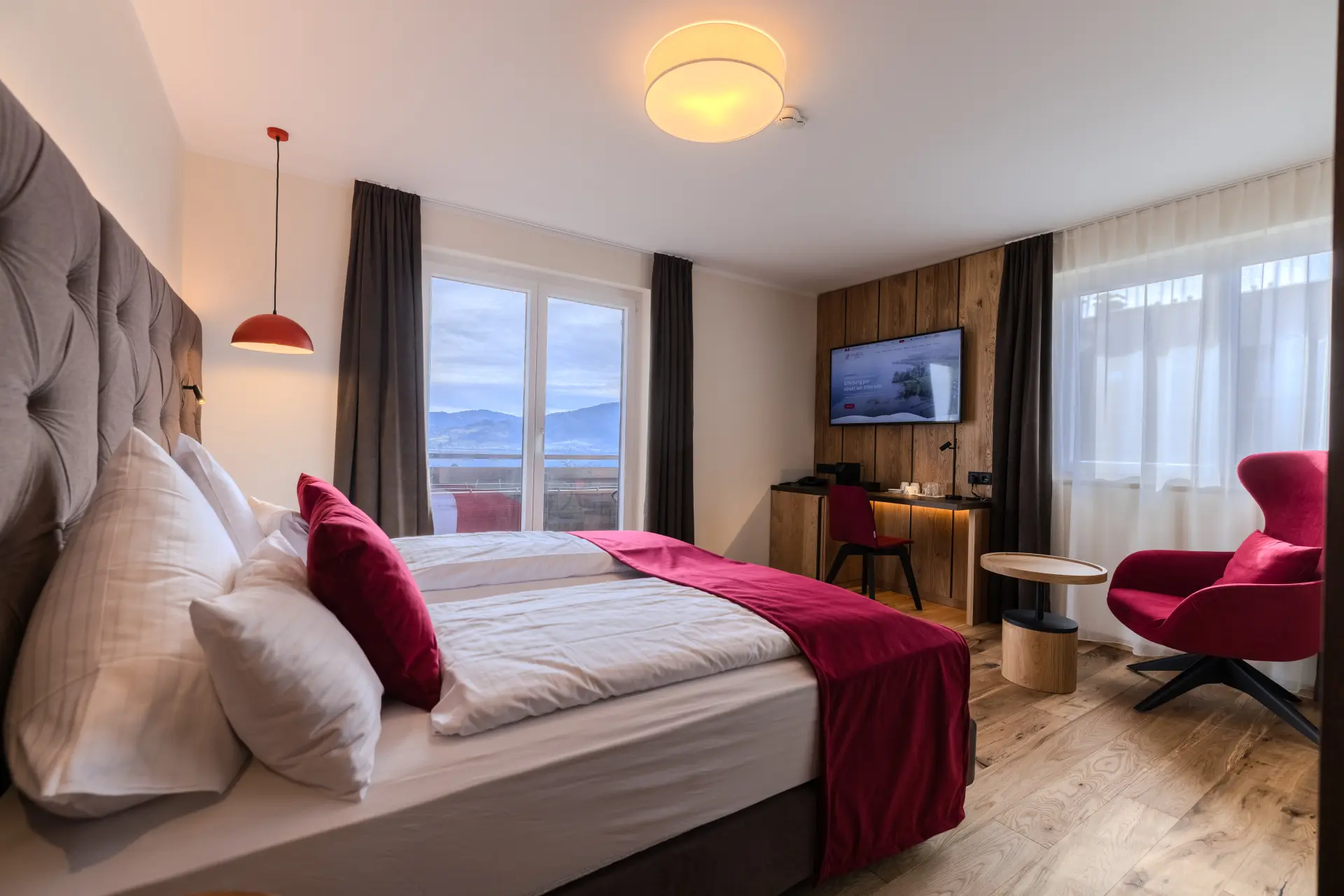 Stilvolle, gemütliche und moderne Zimmer mit herrlicher Aussicht auf den Attersee im Salzkammergut.